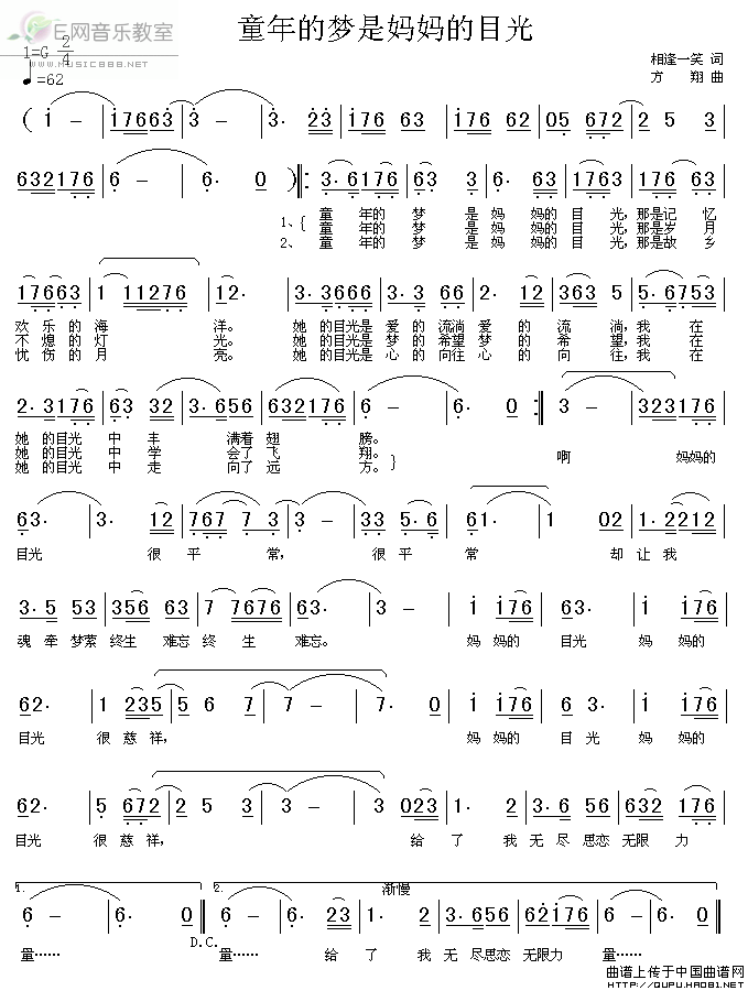 童年的梦是妈妈的目光-梅花雪 歌词:
