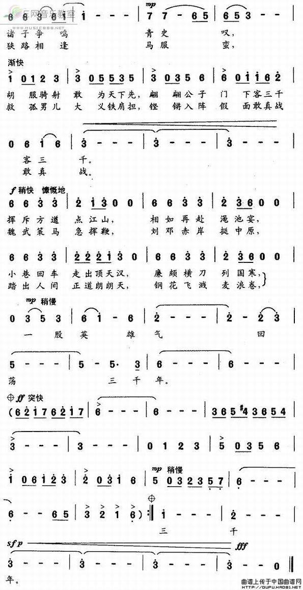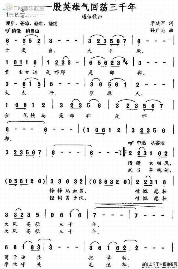 >> 一股英雄气回荡三千年-通俗歌曲(简谱)