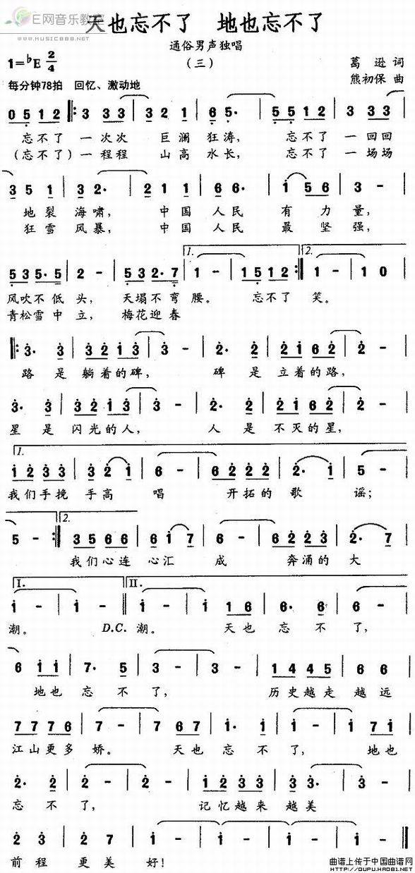 天也忘不了地也忘不了-声乐套曲《魅力新中国》之三(简谱)