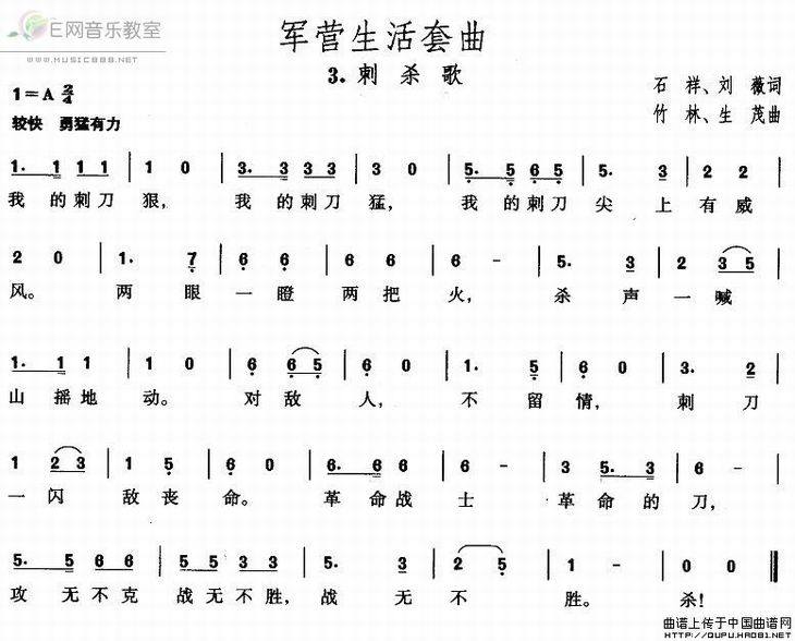 >> 刺杀歌-军营生活套曲(简谱)