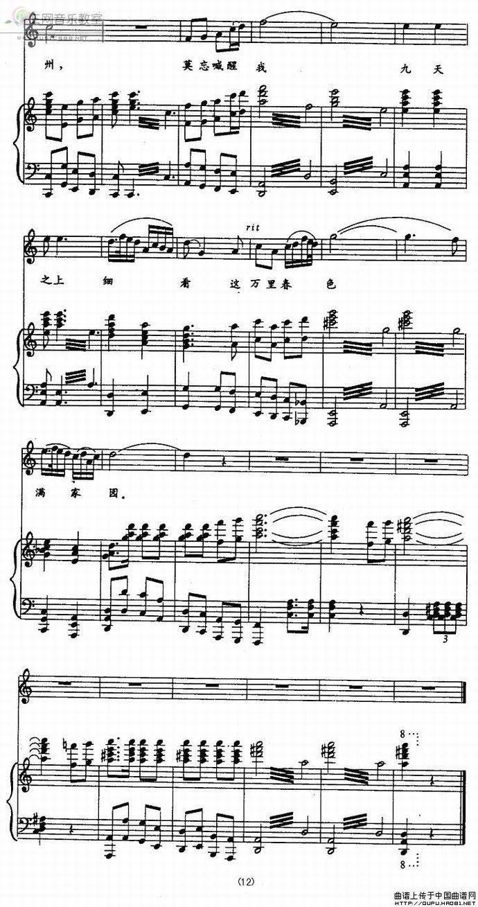 >> 万里春色满家园-彭丽媛(钢琴谱)