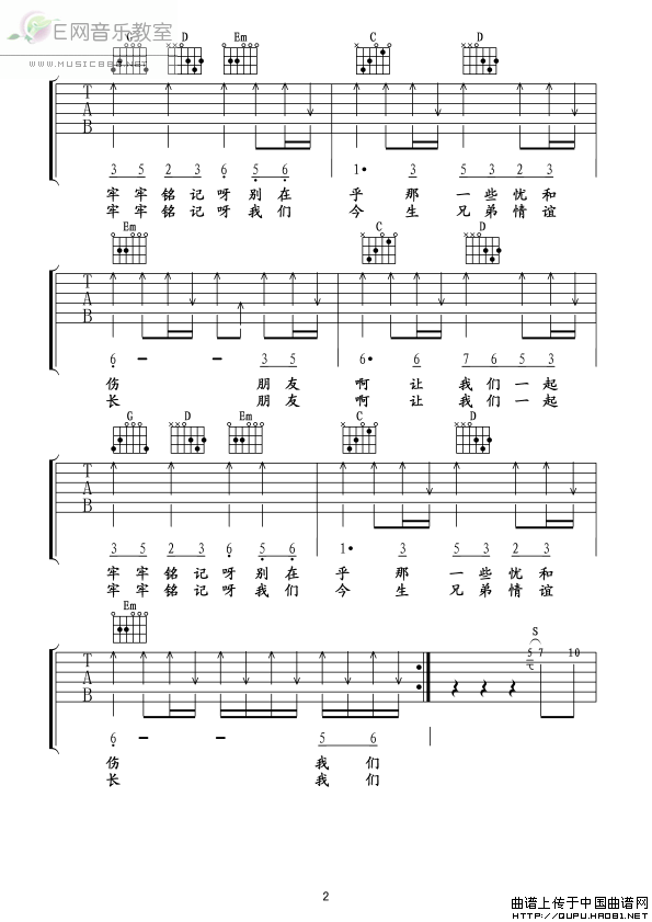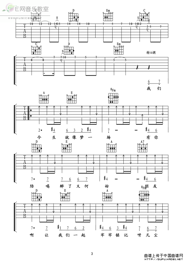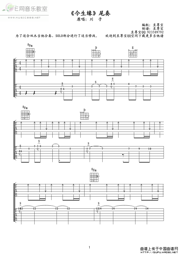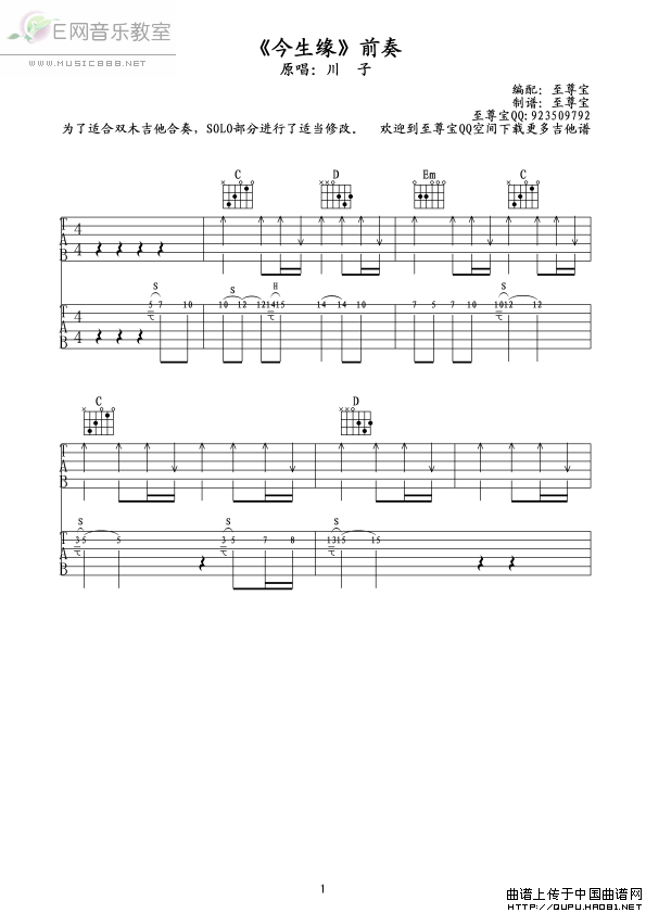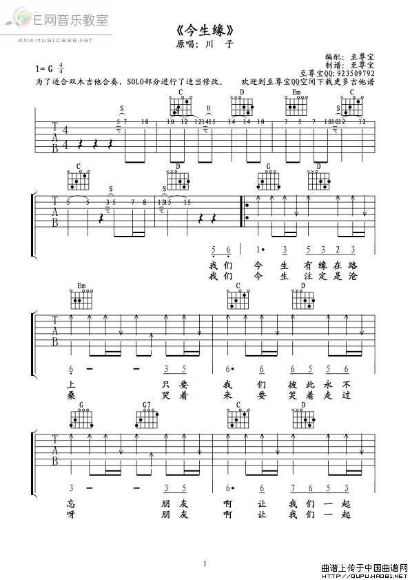 >> 今生缘-川子 旭日阳刚(吉他谱)