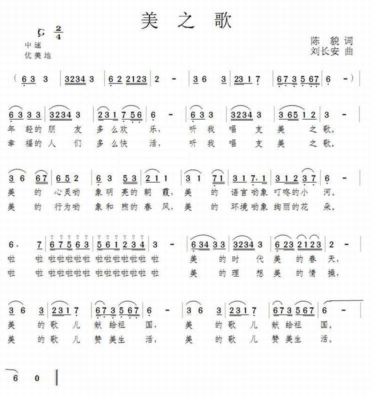 >> 美之歌-陈貌词 刘长安曲(简谱)