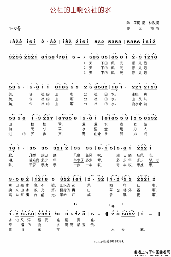 公社的山啊公社的水-陆颀词 姜元禄曲(简谱)