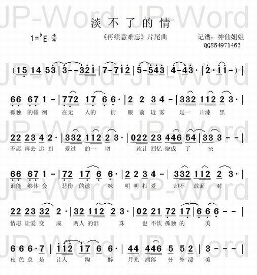 >> 淡不了的情-《再续意难忘》片尾曲(简谱)