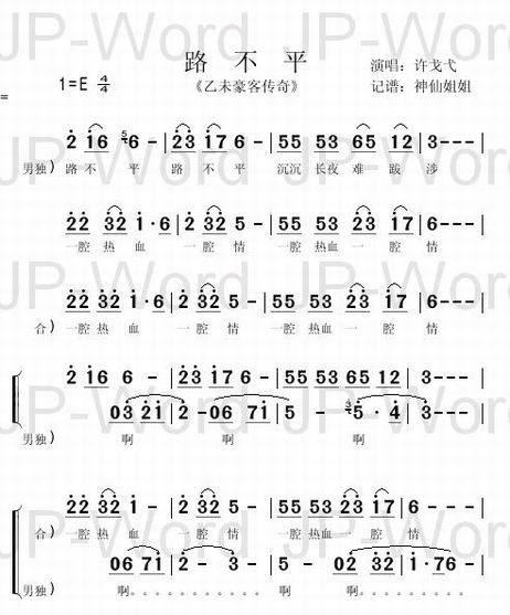 >> 路不平-许戈弋(《乙未豪客传奇》插曲简谱)