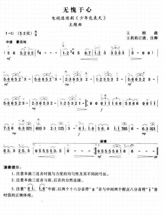 >> 无愧于心-《少年包青天》主题曲(二胡曲谱)
