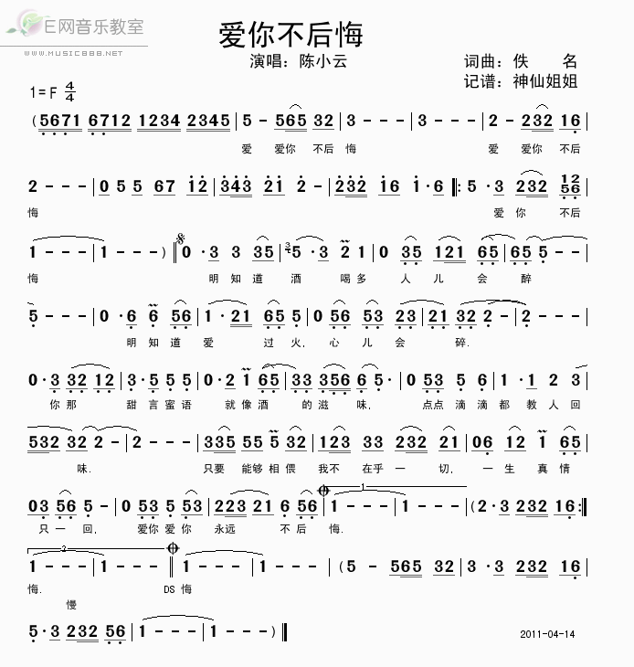 爱你不后悔-陈小云 歌词: