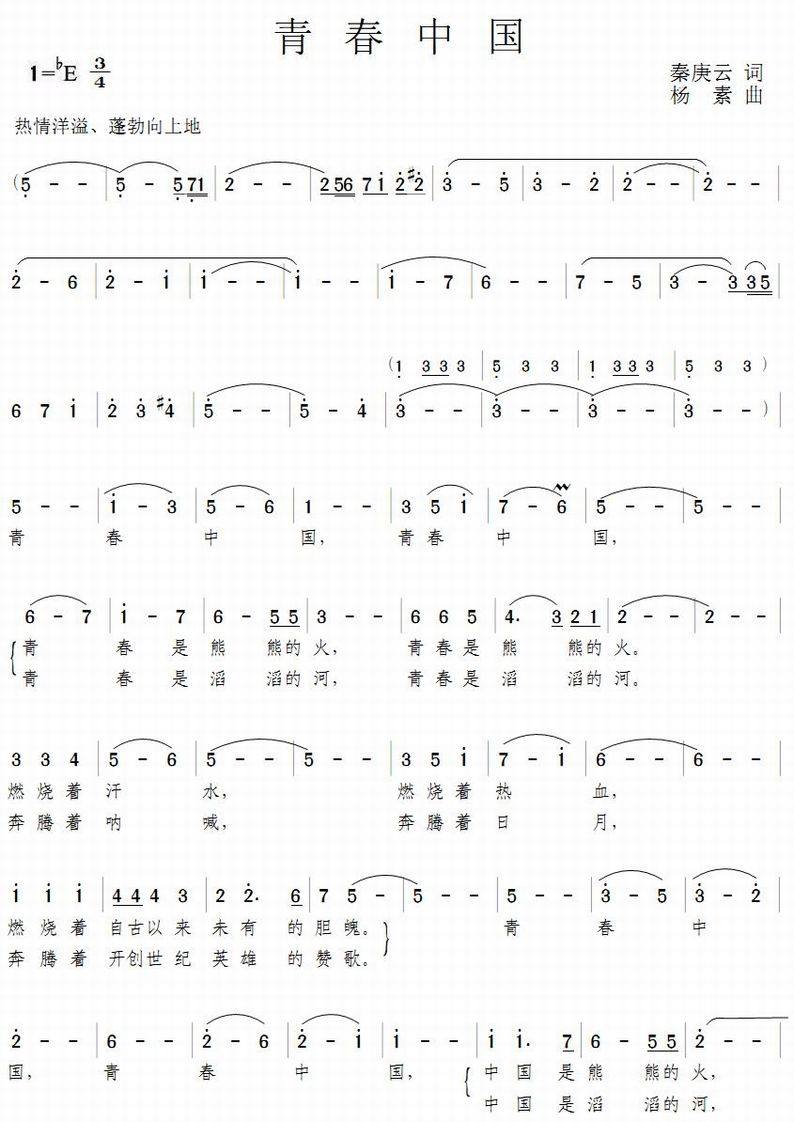 >> 青春中国-秦庚云词 杨素曲(简谱)