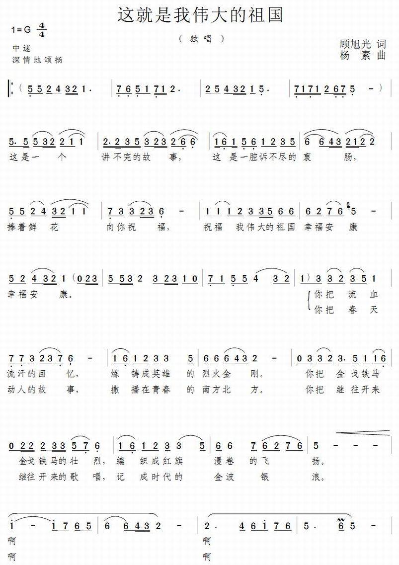 >> 这就是我伟大的祖国-顾旭光词 杨素曲(简谱)