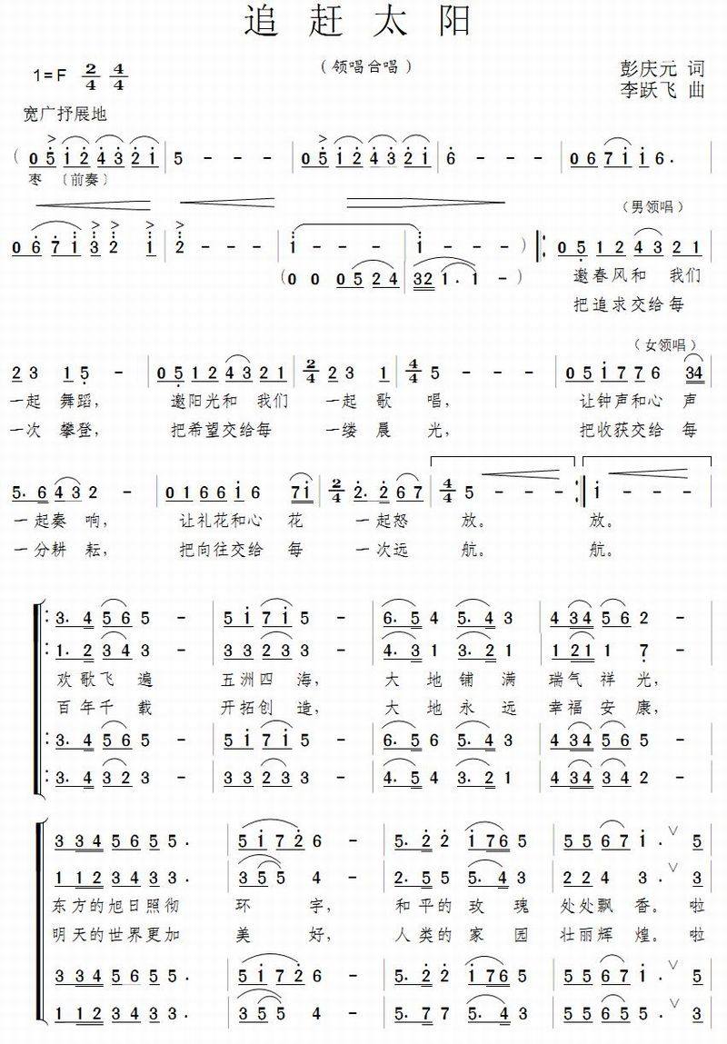 >> 追赶太阳-领唱合唱(四声部合唱简谱)