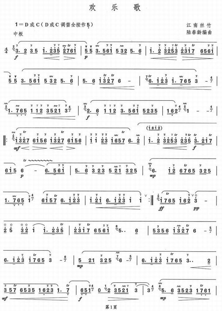 >> 欢乐歌-笛子独奏曲(笛子曲谱_简谱)
