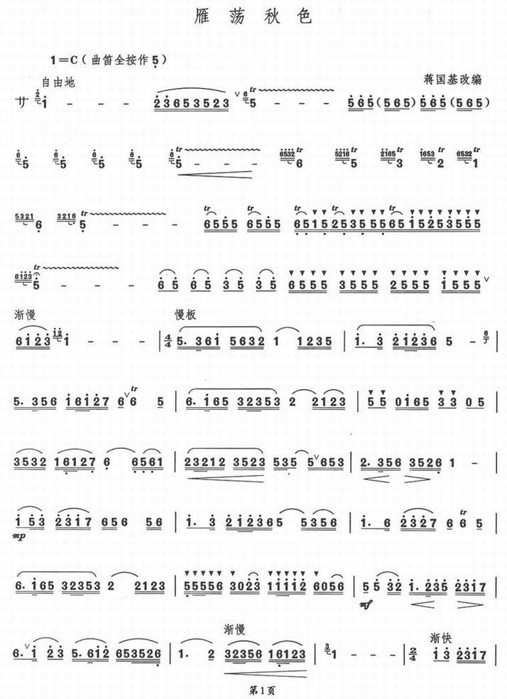 >> 雁荡秋色-笛子独奏(笛子曲谱_简谱)