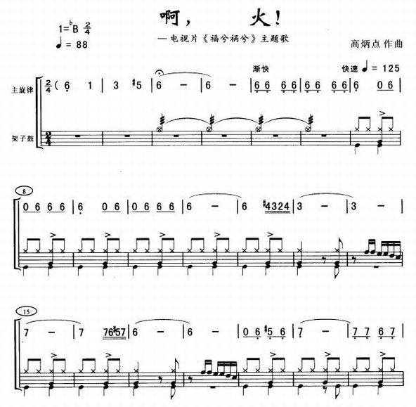 >> 啊,火!(电视片《福兮祸兮》主题歌架子鼓谱)