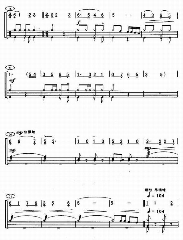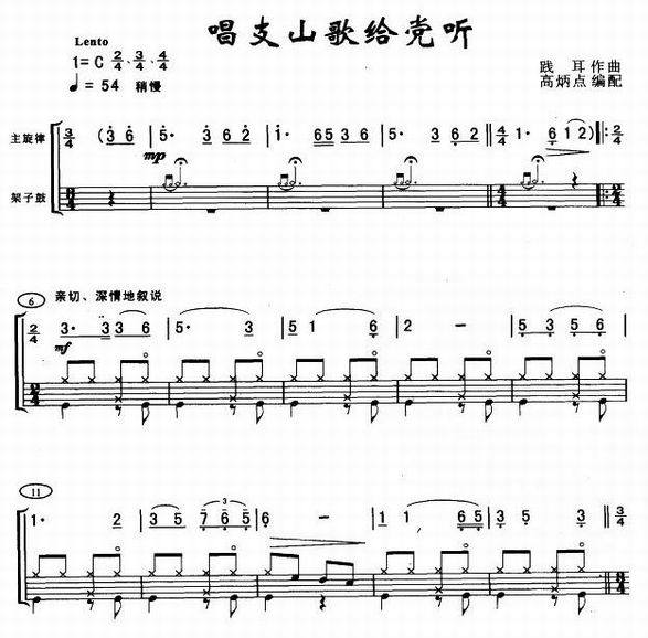 >> 唱支山歌给党听-乐队用谱(架子鼓谱)