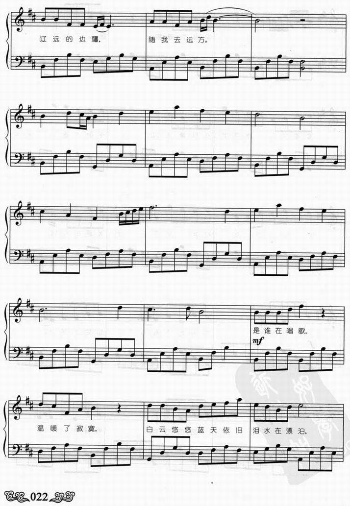 >> 自由飞翔-凤凰传奇(钢琴谱_五线谱)