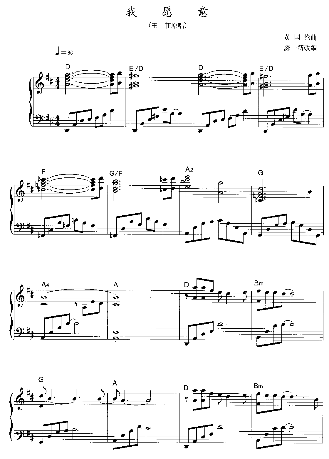 我愿意-王菲(钢琴曲_五线谱)