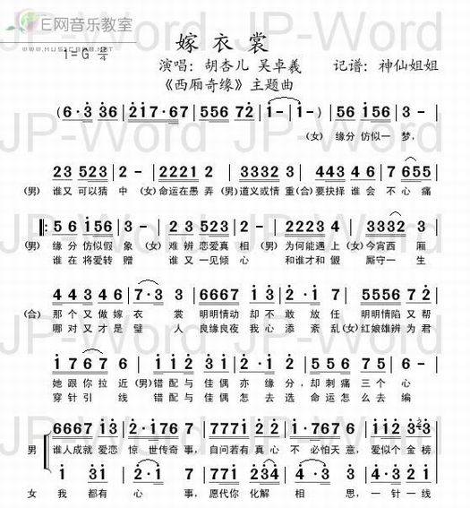 嫁衣裳-胡杏儿 吴卓羲 歌词: