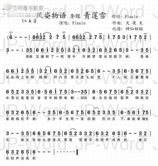 >> 风姿物语·李煜·青莲雪-Finale(简谱)