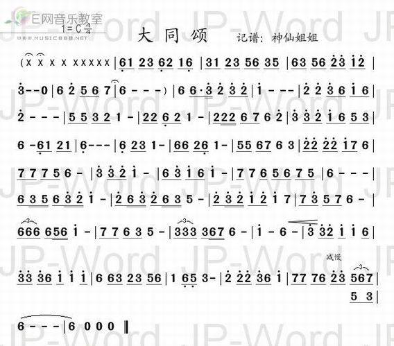 >> 大同颂-旋律简谱