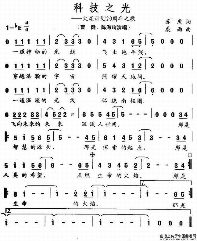 >> 科技之光-曹健 陈海玲(火炬计划20周年之歌简谱)