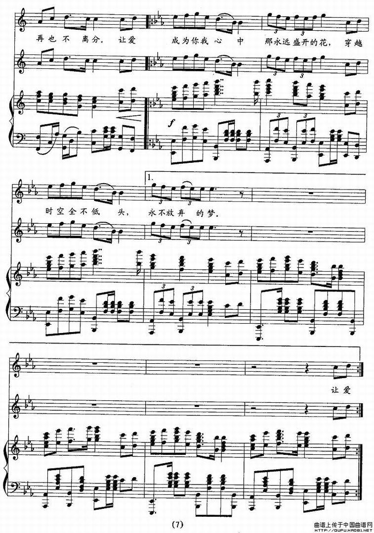 >> 无尽的爱-成龙 金喜善(《神话》主题歌钢琴谱_五线谱)
