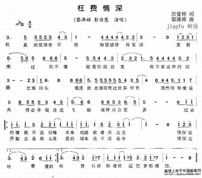 枉费情深-黎沸辉 彭佳慧(简谱)