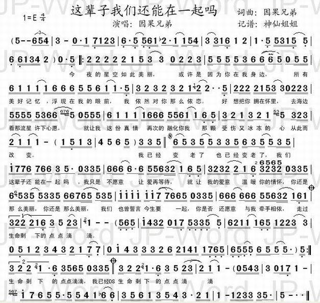 这辈子我们还能在一起吗-因果兄弟 歌词: