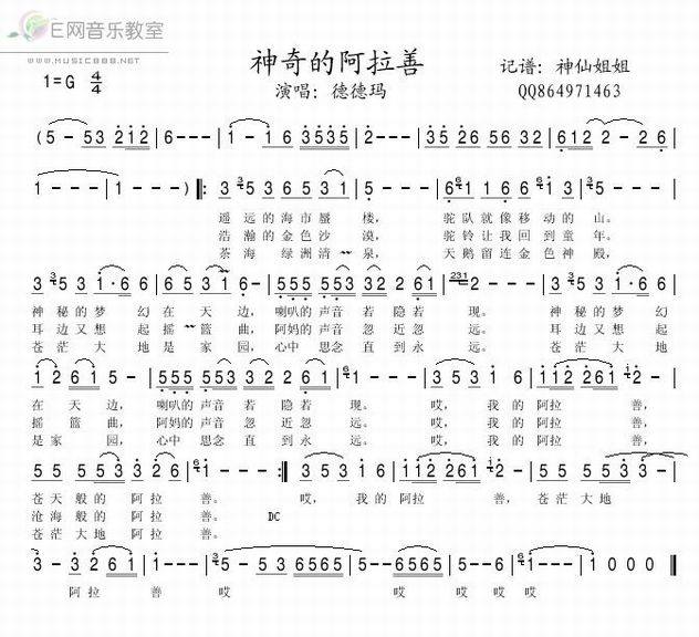 >> 神奇的阿拉善-德德玛(简谱)
