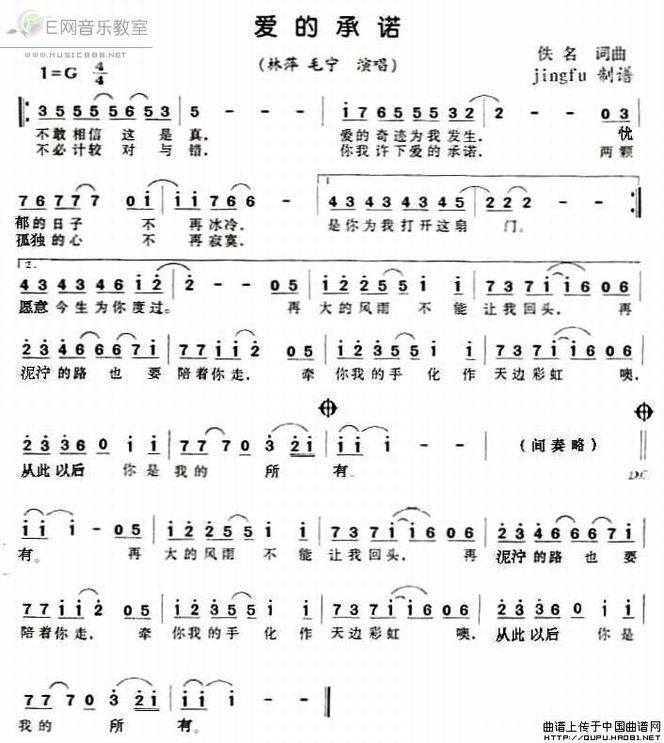 >> 爱的承诺-林萍 毛宁(简谱)