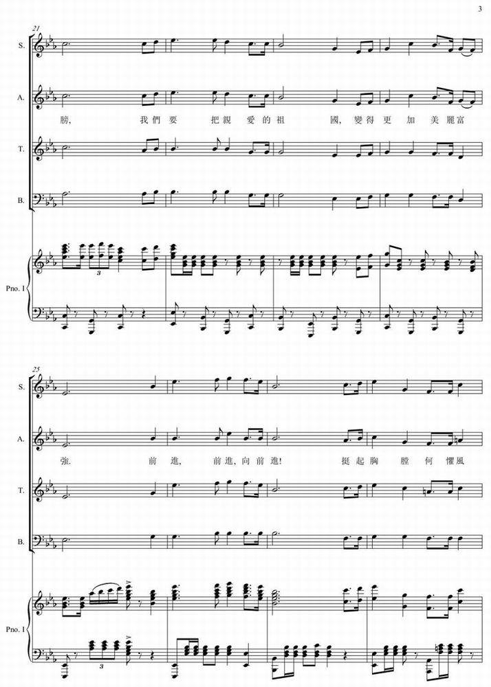 在新世纪的阳光下前进-领唱与混声合唱(钢琴伴奏_五线谱)