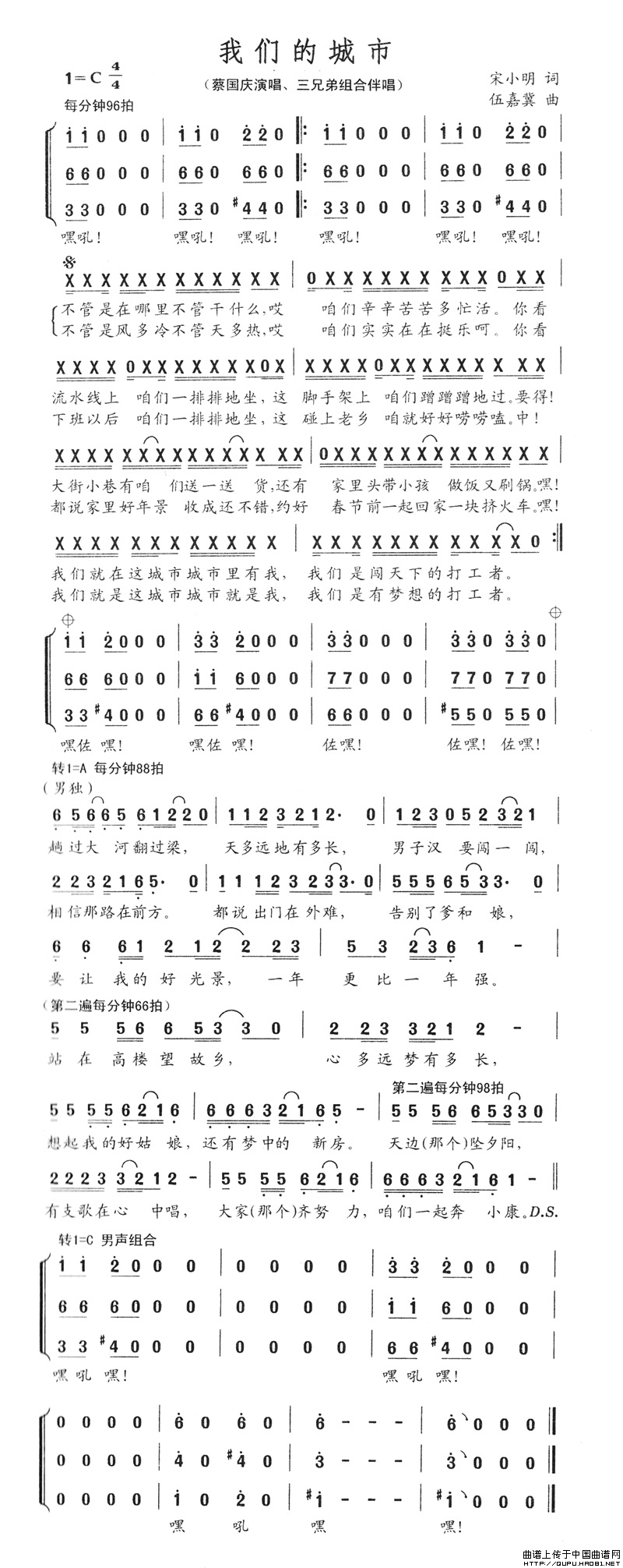 我们的城市-蔡国庆 三兄弟组合(三声部简谱)