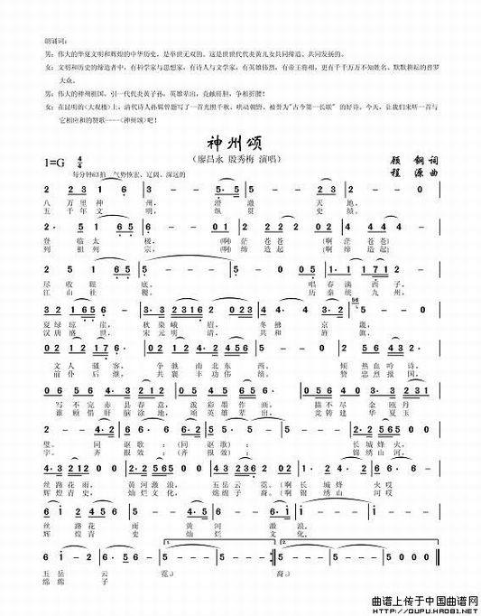 >> 神州颂-廖昌永 殷秀梅(简谱)