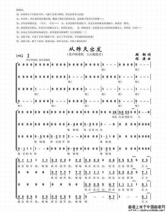 >> 从昨天出发-八只眼组合(四声部简谱)