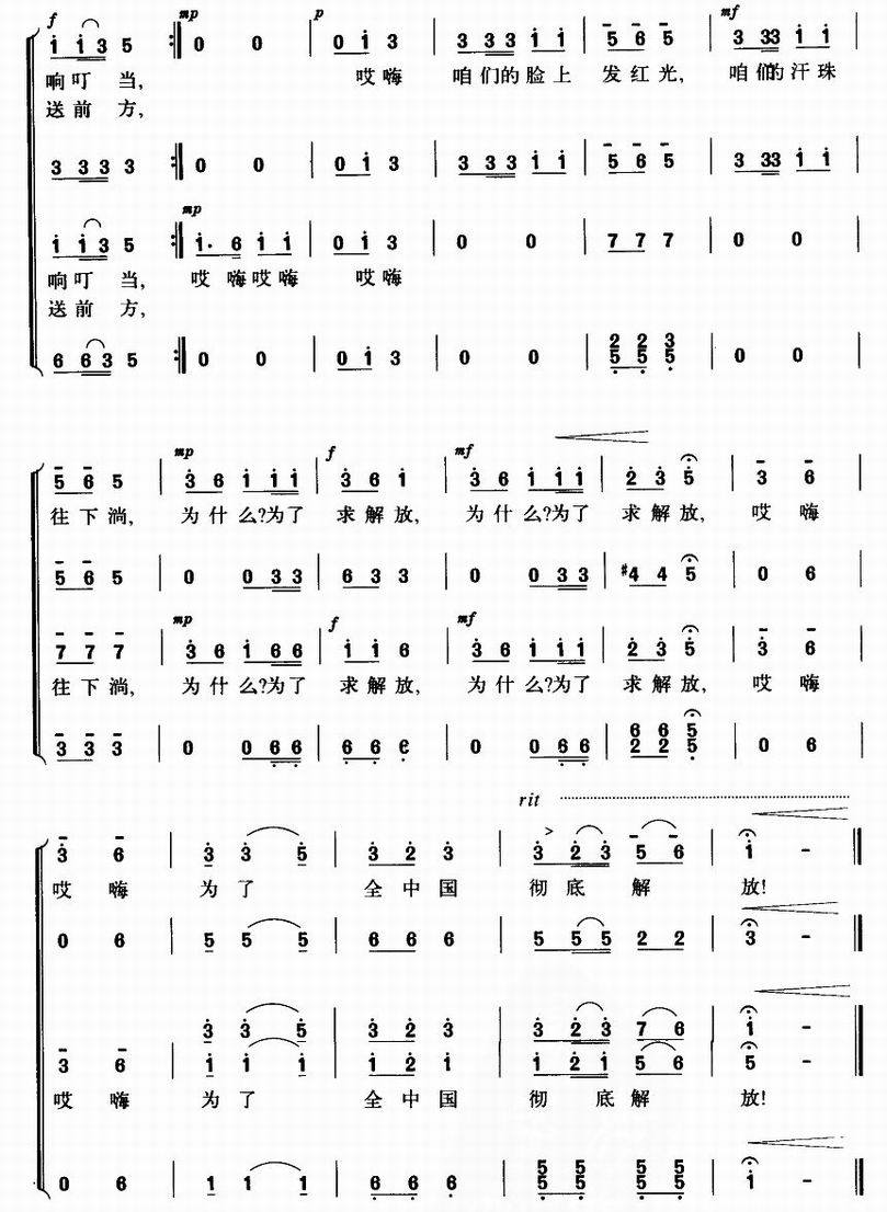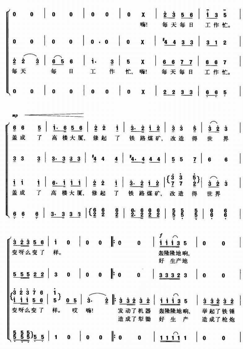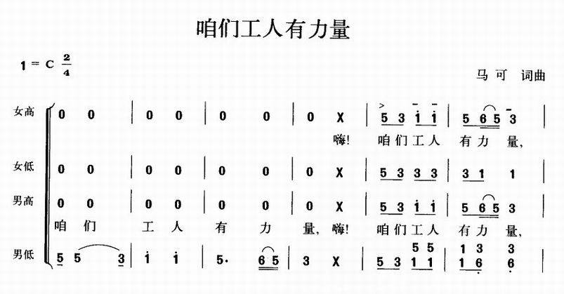 >> 咱们工人有力量-混声合唱(四声部合唱简谱)