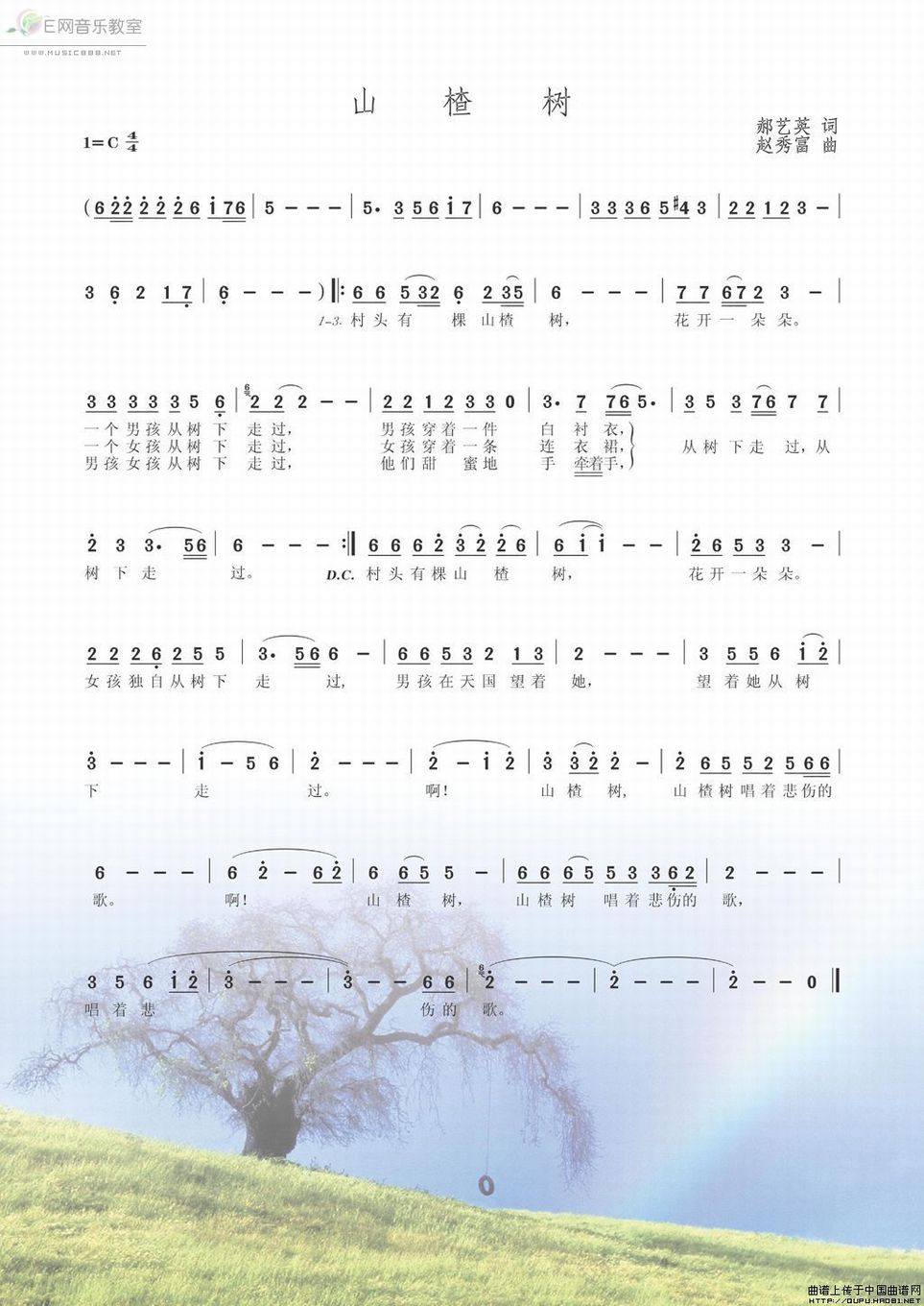 >> 山楂树-郝艺英词 赵秀富曲(简谱)