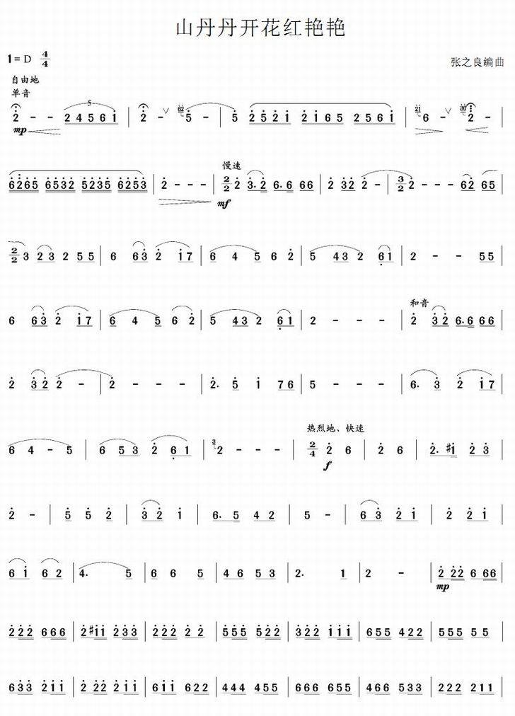 >> 山丹丹开花红艳艳-笙曲谱(简谱)