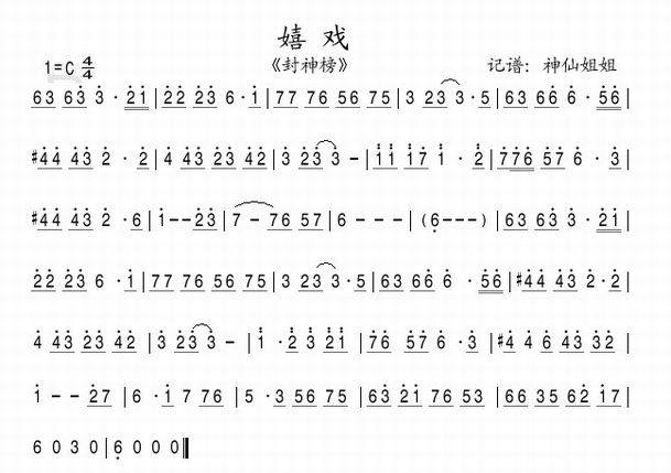 >> 嬉戏-《封神榜》音乐(旋律简谱)