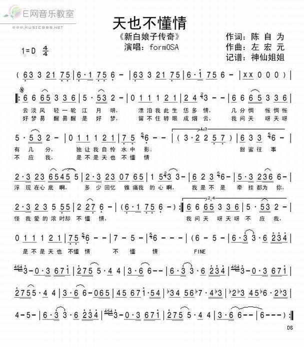 >> 天也不懂情-formOSA(《新白娘子传奇》插曲简谱)