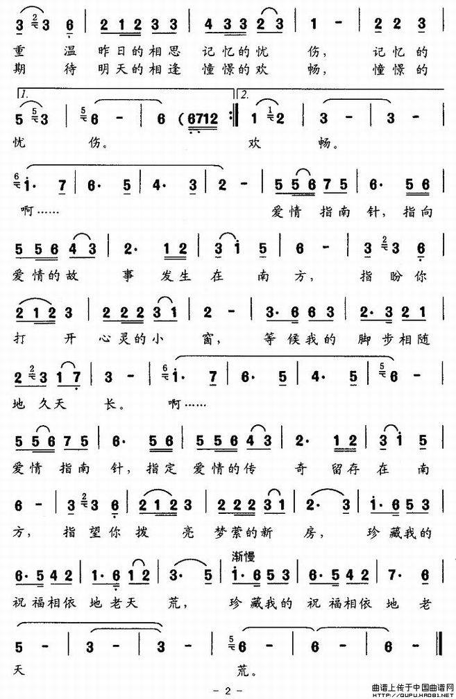 >> 爱情指南针-朱积聚词 楼勤曲(简谱)
