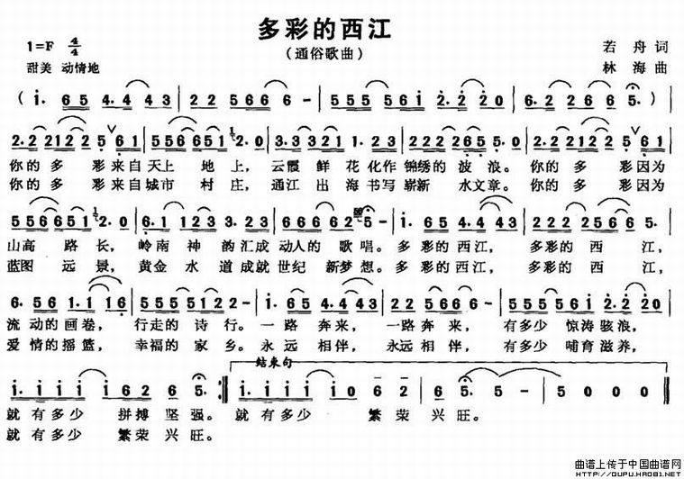 >> 多彩的西江-若舟词 林海曲(简谱)