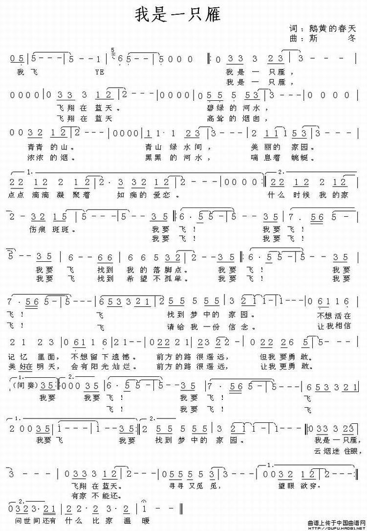 我是一只雁-鹅黄的春天词 斯冬曲(简谱)