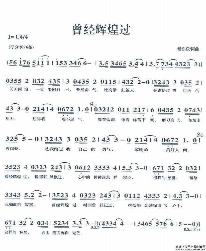 >> 曾经辉煌过-谢铁跃词曲(简谱)