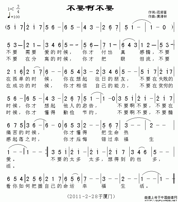 >> 不要啊不要-范修奎词 黄清林曲(简谱)
