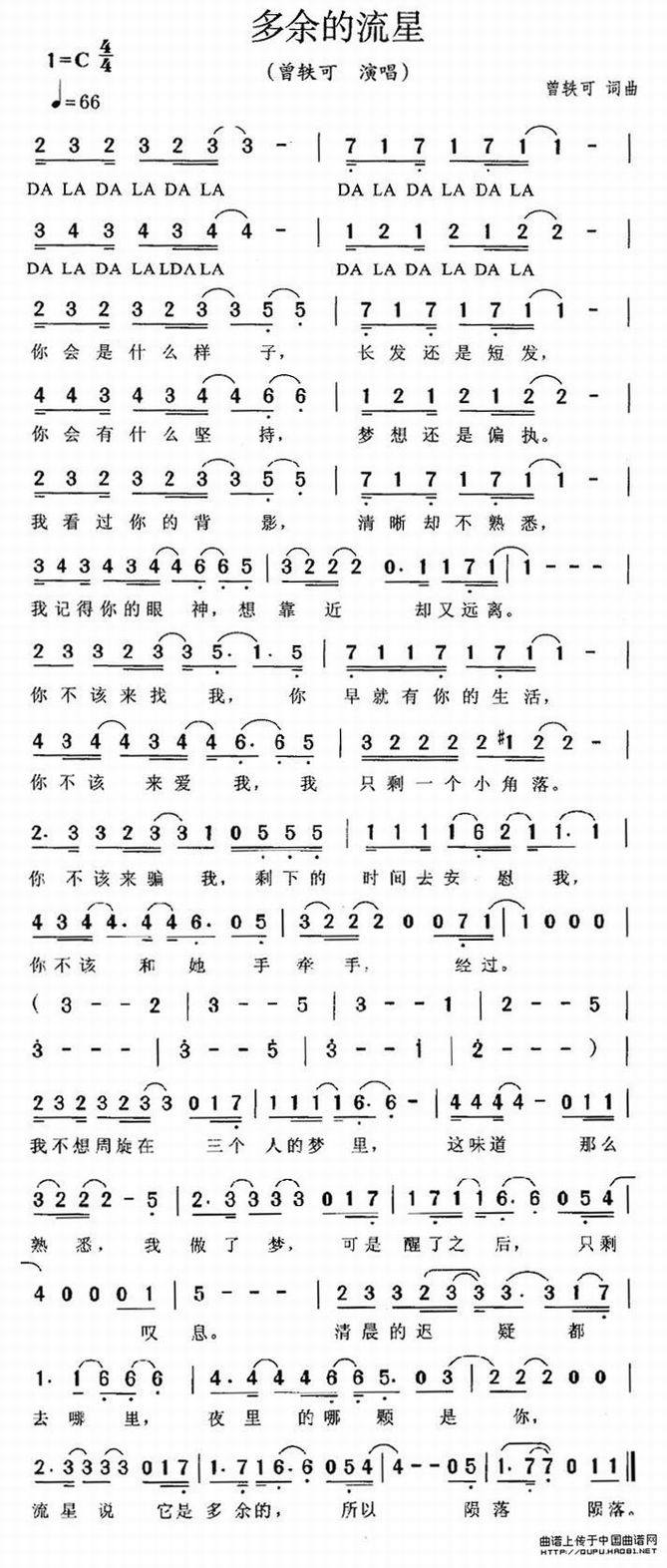 多余的流星-曾轶可 歌词: