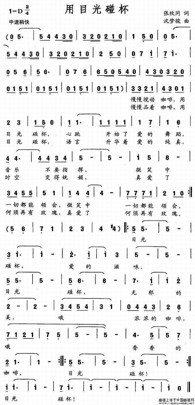 用目光碰杯-张枚同词 沈梦骏曲(简谱)