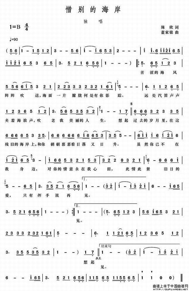 >> 惜别的海岸-李雨嫣(简谱)