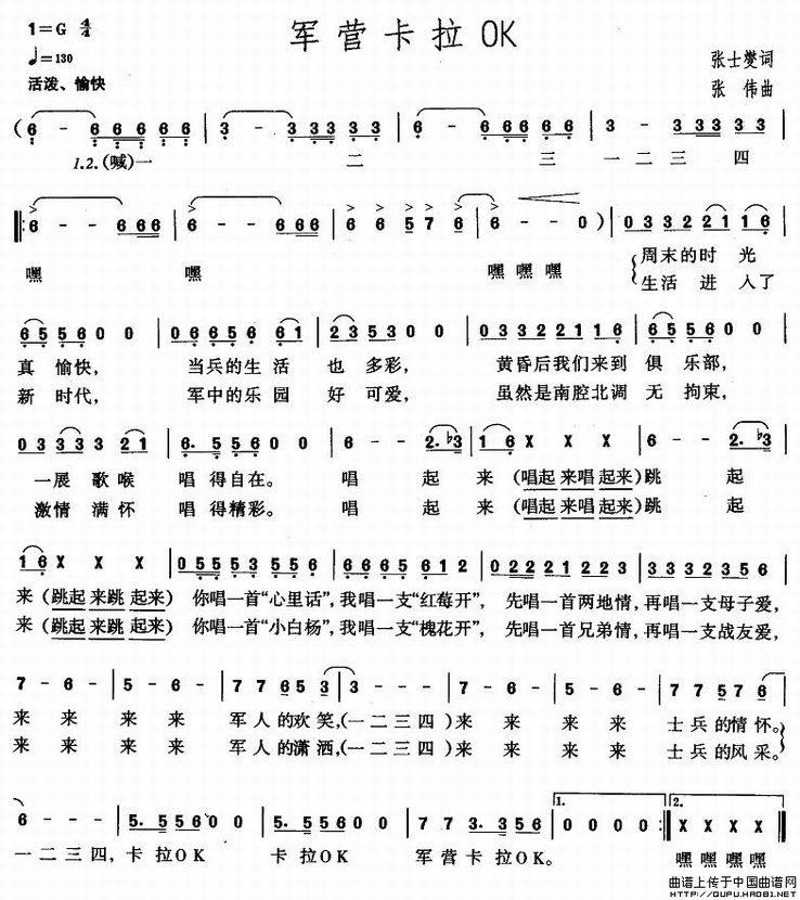>> 军营卡拉OK-张伟曲(简谱)
