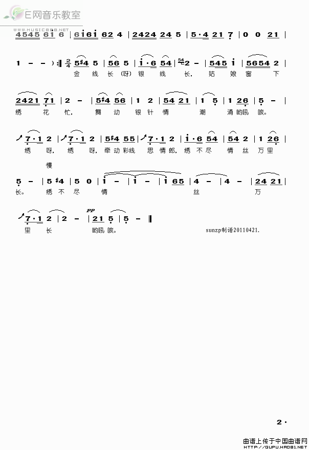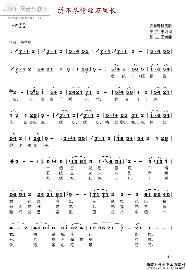 >> 绣不尽情丝万里长-朱逢博(简谱)