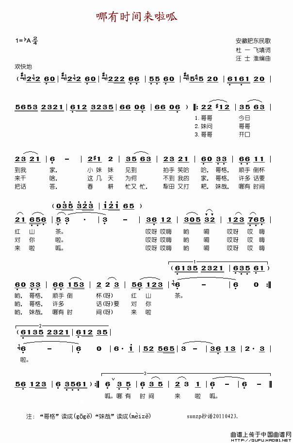 安徽肥东民歌 杜一飞填词 汪士淮编曲